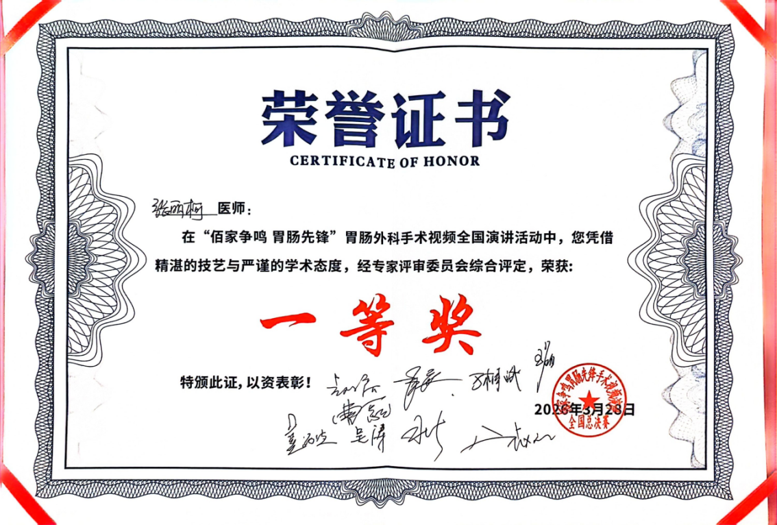 张丽柯凭借规范的外科治疗、合理的手术规划、娴熟的操作技巧、精准的外科理念以及流畅的视频解说,赢得了评委们的一致赞赏——一等奖,实至名归!